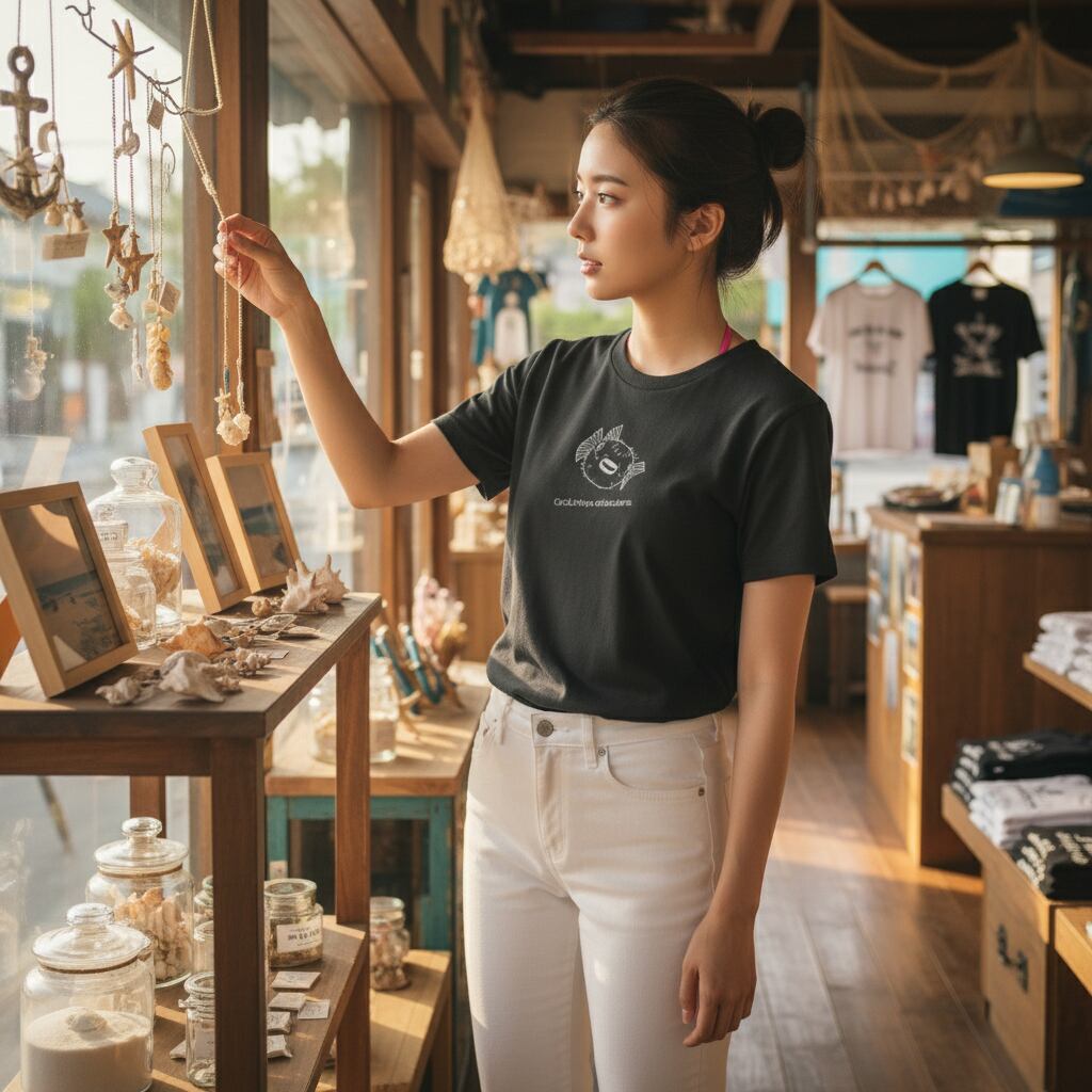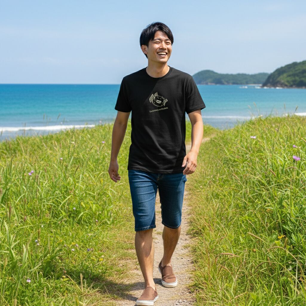 ちょっとおまぬけな感じもする愛らしい笑顔のメイタイシガキフグを胸元に楽しい一日を過ごしてみるのはいかがでしょうか?