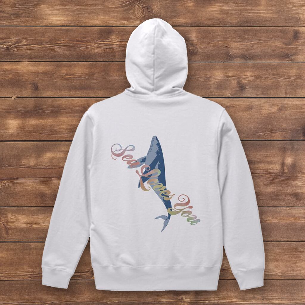 そんなザトウクジラの七色の歌声をイメージした、カラフルかつシンプルなデザインを背中にドンとプリントしたアイテムです。